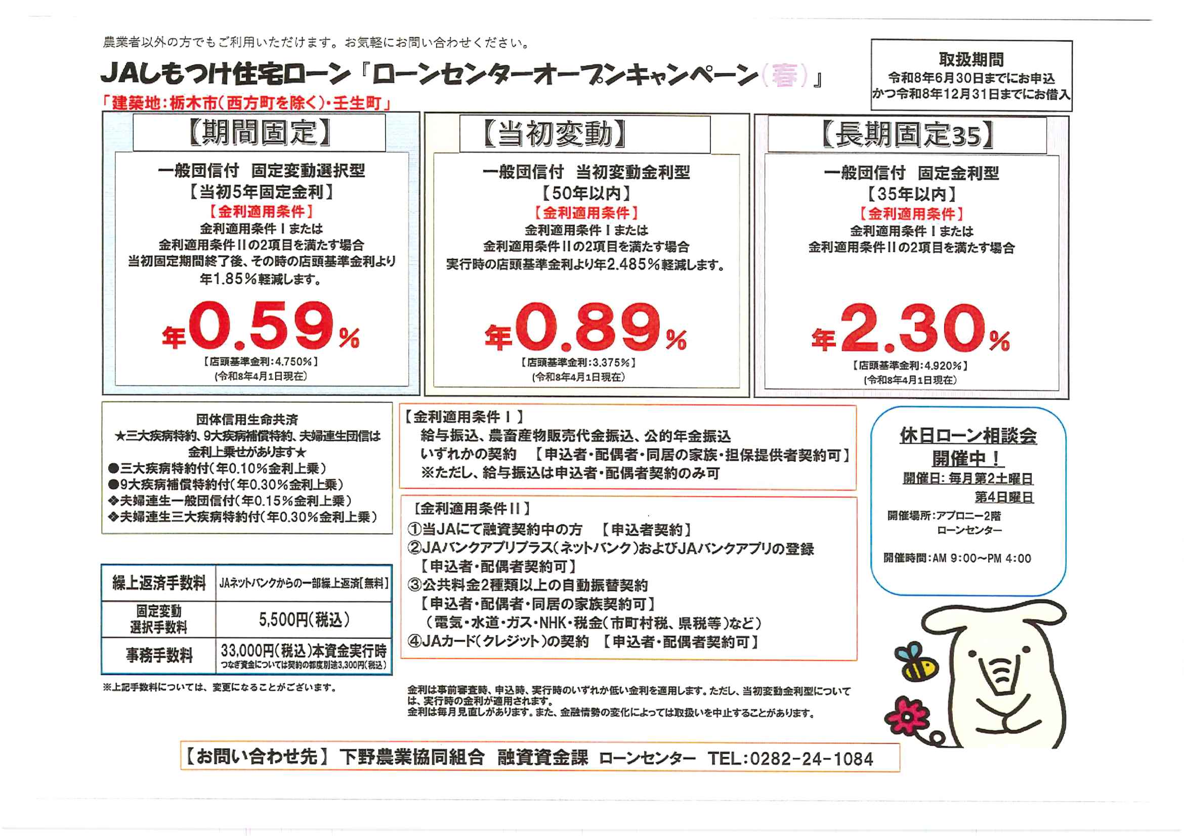JAバンク 住宅ローン「ローンセンターオープンキャンペーン(春)」のご案内です 投稿日 : 2026.04.01 カテゴリー : JAバンク この記事のURL : https://www.ja-shimotsuke.jp/news/?p=6021
